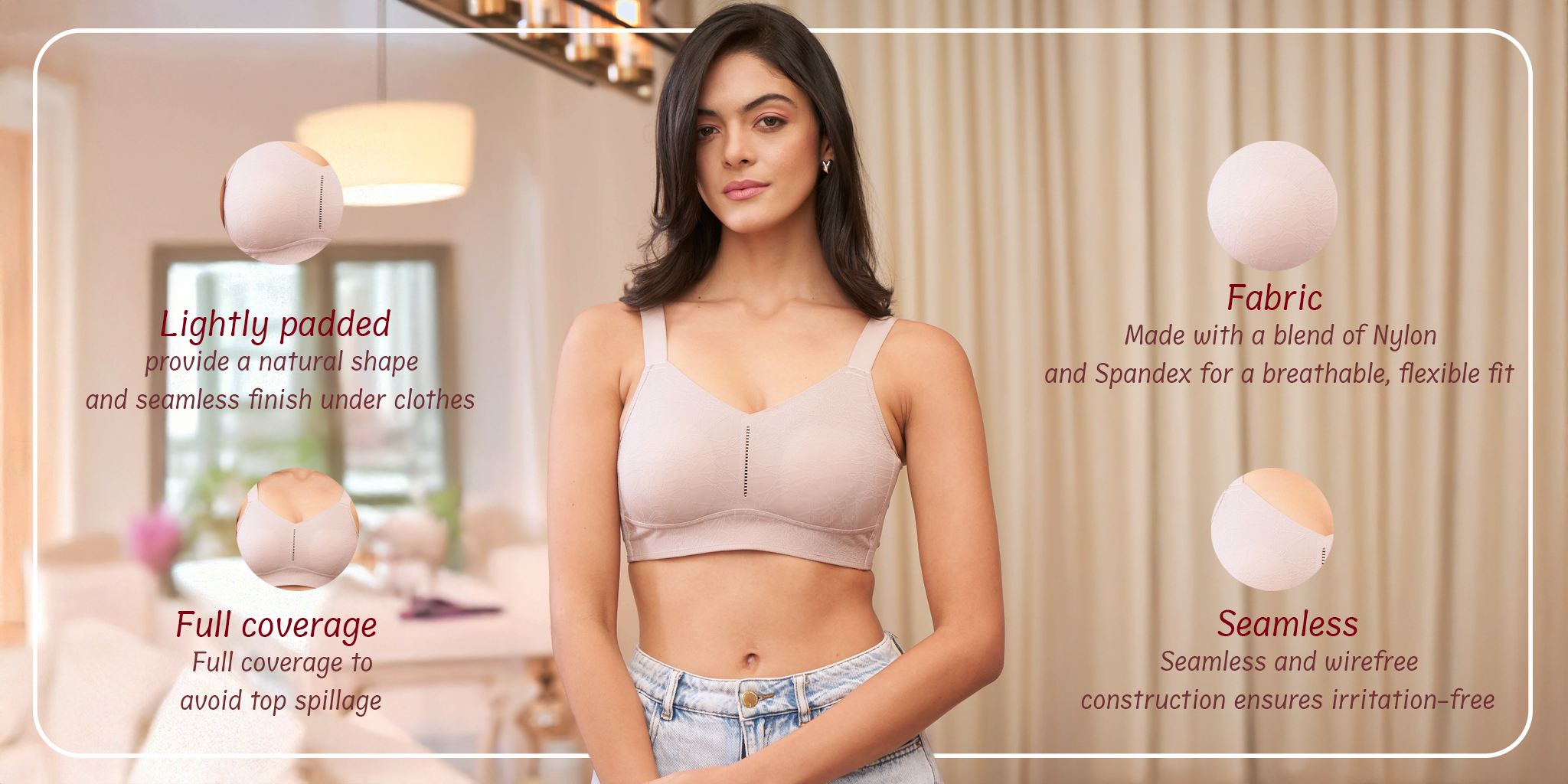 Seamless and wirefree construction ensures irritation-free wear from morning to night. -