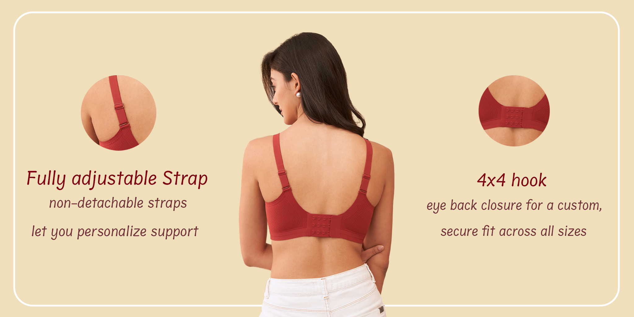 4x4 hook & eye back closure for a custom, secure fit across all sizes. -