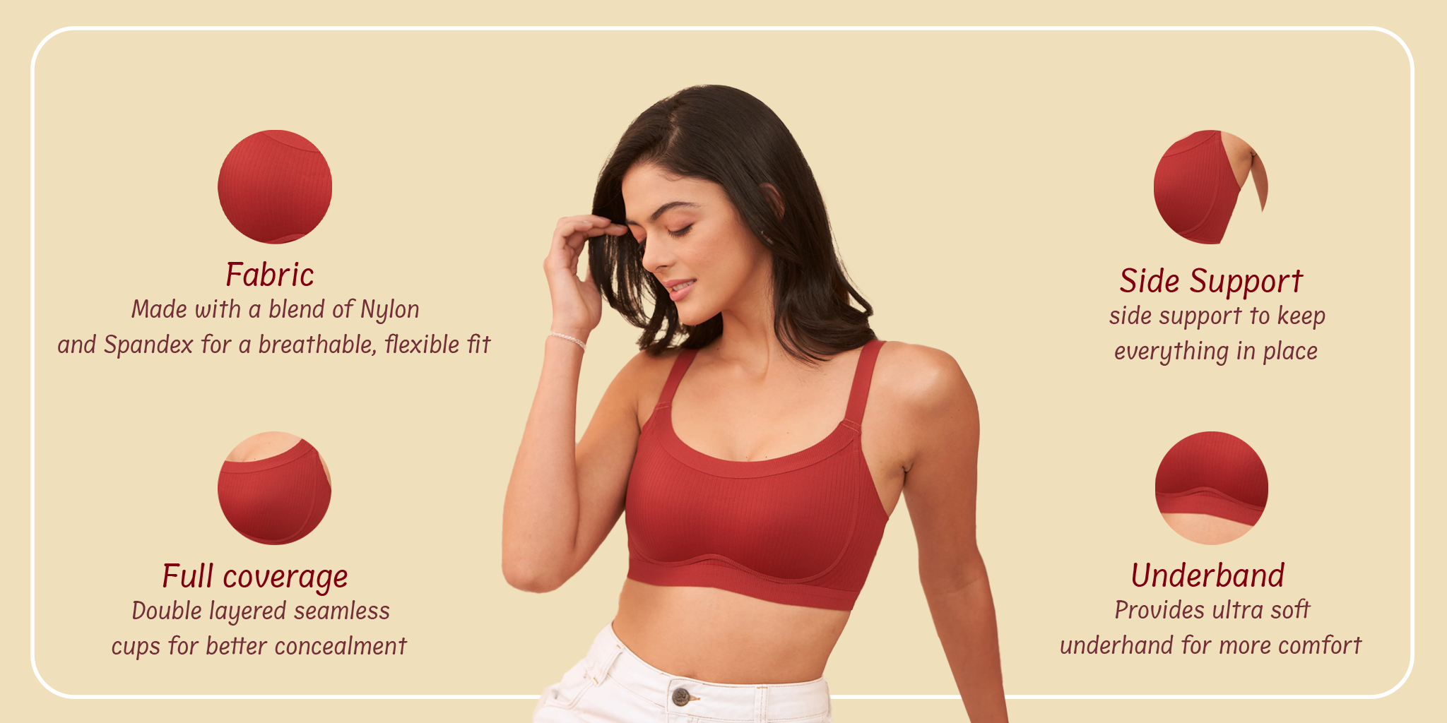 Elevate your daily essentials with the Side Support Seamless Bra, thoughtfully crafted for unmatched comfort and all-day support. This everyday padded bra is designed to give you a smooth silhouette while offering full coverage and a wirefree experience you’ll love.